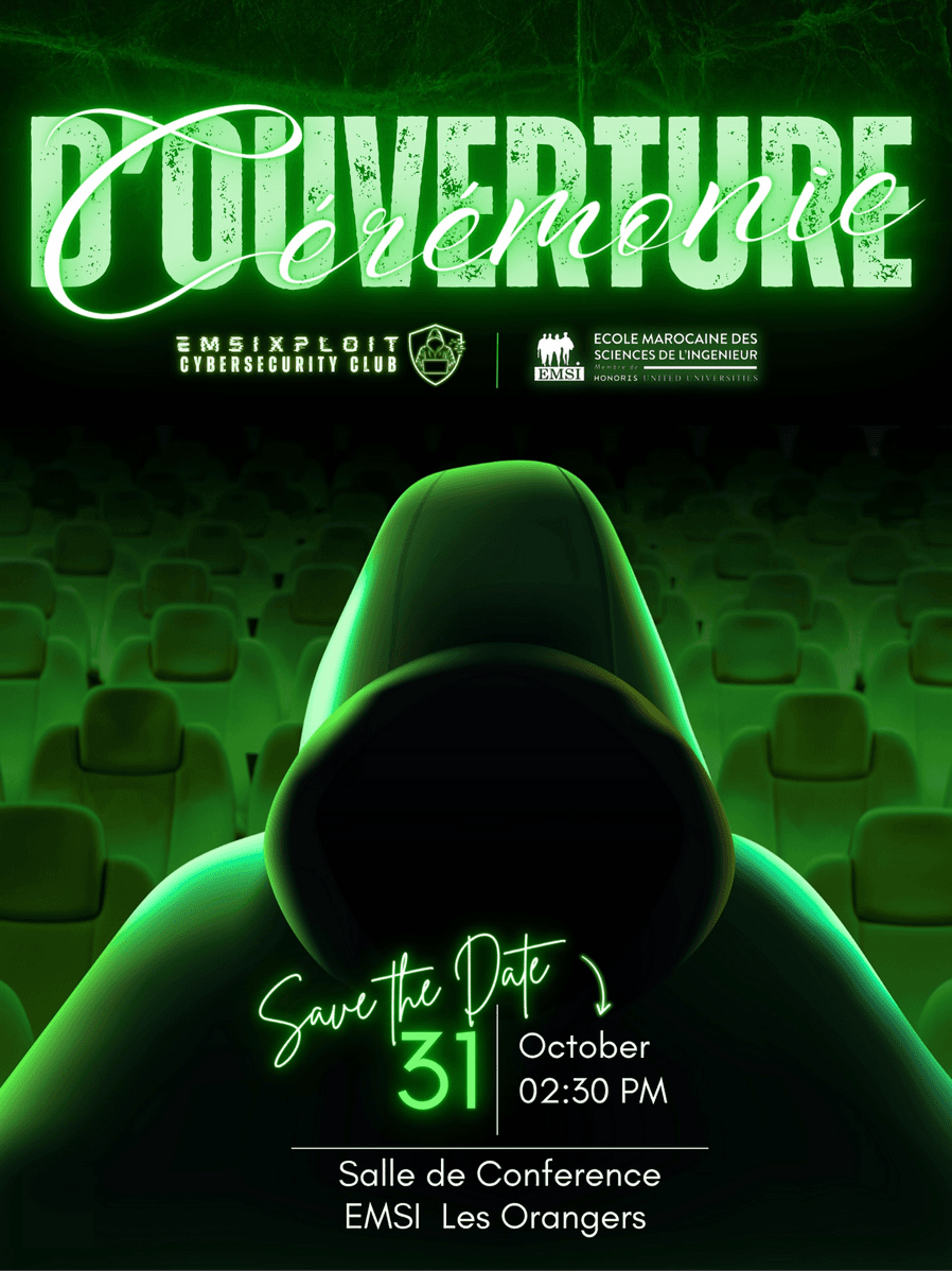 Save the date — Opening ceremony for EMSIxploit Cybersecurity Club at EMSI Les Orangers.
